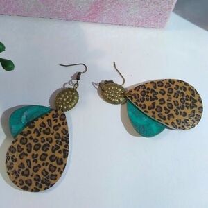 If you love the southwestern style and the leopard print, you will love these Southwestern Cactus Teardrop Earrings. These earrings are made of faux leather and metal that create a stunning combination. They have a leopard print teardrop shape that is accented with a patina metal teardrop disc with a cactus that has a red cabochon embedded on it. The cactus adds some charm and color to the earrings. The earrings are topped with an oval of iridescent rhinestones that add some sparkle and glamour to the earrings. The earrings have a dangle length of approximately 4 inches and are attached to ear hooks that are comfortable and easy to wear.