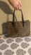 This adorable small tote fits quite a bit! Gently used and 💯% authentic! Very clean with minimal signs of wear throughout. Comes with a generic dust bag. Three compartments (middle zips). Interior metal tag still has the protective film on it!