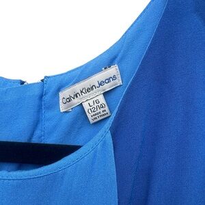 Stylish blue romper for kids, made by Calvin Klein Kids. Sleeveless design. Perfect for casual outings. Size 12/14. Pockets and zippered back closure. Good condition! Color may vary due to lighting. Your satisfaction is very important to me, please let me know if you have any questions before purchasing. Thank you for visiting my listing and Happy Shopping!