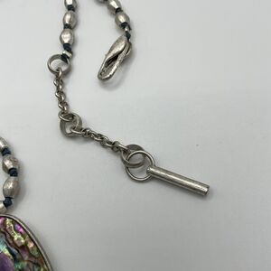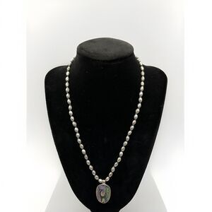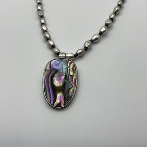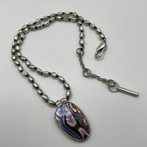Kenneth Cole Reaction Necklace Abalone Pendant Silver Tone Vintage 90s 17” - 19” adjustable