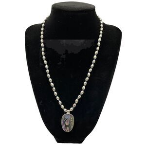 Kenneth Cole Reaction Necklace Abalone Pendant Silver Tone Vintage 90s 17” - 19”