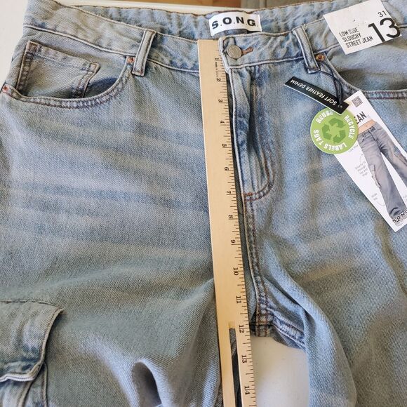 SONG Low Rise Slouchy Street Cargo Jean Blue Light Wash Denim Wide Leg NEW