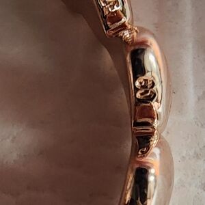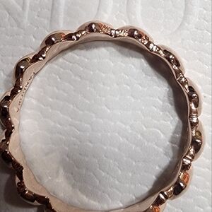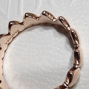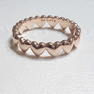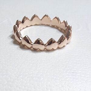 Give a gift from the heart with this 14k rose gold-plated ring. Expertly crafted with a row of hearts making up the band, this romantic design looks equally beautiful worn on its own or layered with contrasting Pandora rings. Give it as a gift for a meaningful way to express your love, or treat yourself to a piece you'll love wearing over and over.