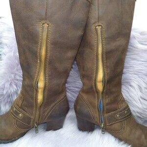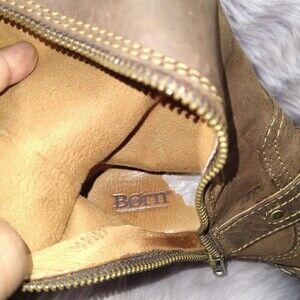 Born Leather Knee High Harness Boots Brass Studs Womens Size 6 Brown W62173