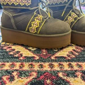 Uggs Green Platform Braided Mini Boots ✨