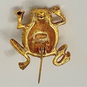 Vintage Roman Rhinestone Frog Brooch Gold Plate
