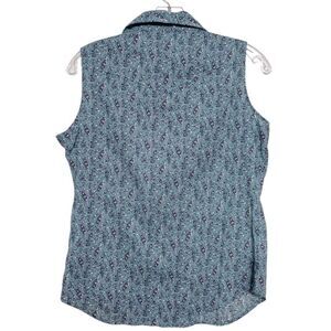 Wrangler women's snap pearl button up western rodeo blue sleeveless blouse top