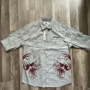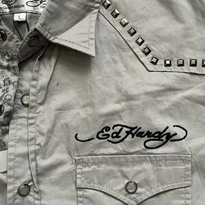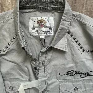 Y2K Ed Hardy Gray Graphic Men's Shirt