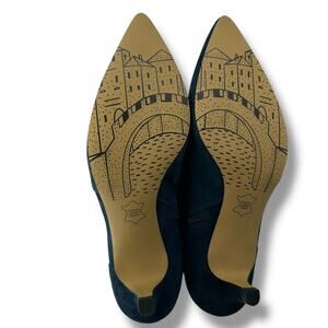 NEW Bella Vita Blue Suede Kitten Heels Size 8W Wide Buckle Pointed Toe Booties