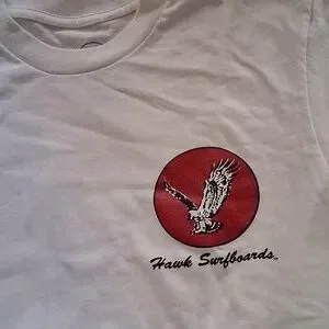 Sam Hawk Surfboards Custom T-shirt. 100% Cotton. Hawk Custom Logo on Front and Back of T-shirt. Fly Like A Hawk