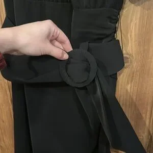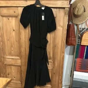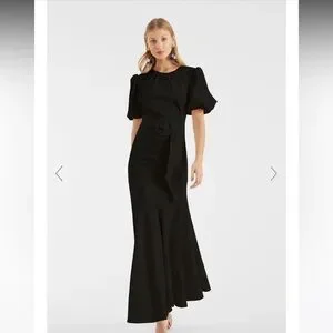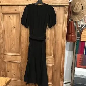 The Camilla dress in crepe is a modified mermaid silhouette perfect for day to evening. Ruching at the jewel neck creates a subtle blouson, and the bodice features a self-belt with hand wrapped buckle. Ruching is also seen at the side to hug the hip, falling away from the body with a fluid asymmetric hem.