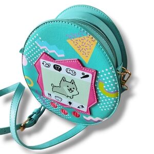 Fun and colorful crossbody bag. Features a retro digital pet design. Perfect for adding a playful touch to any outfit.