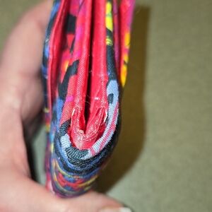 Vibrant and stylish, this quilted wallet is perfect for adding a pop of color to any outfit. Its unique design features a blend of red, blue, and yellow hues, making it a standout accessory. NWOT