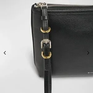 Zipped closure and leather strap with GIVENCHY engraved metal buckles.