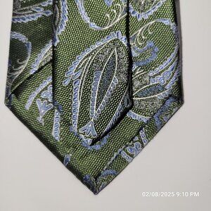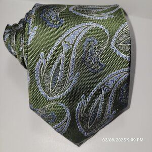 Jos A Bank Signature Collection Silk Tie Green Paisley 3 7/8" X 60"