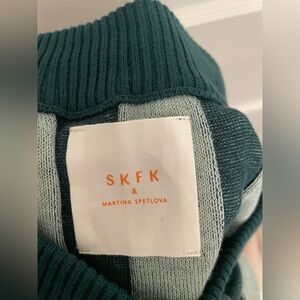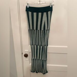 Long tricot skirt with buttons on one side. A collaboration with Martina Spetlova. Combines fashion and artistry in a unique piece. GOTS certified organic cotton.