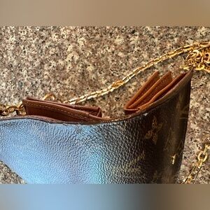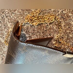 comes with a gorgeous 47 inch generic gold chain and charm so you can wear it as a purse/