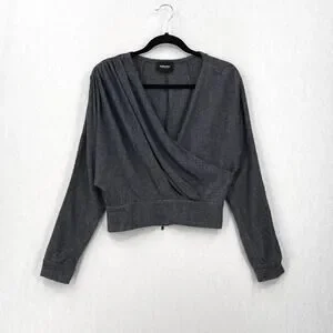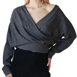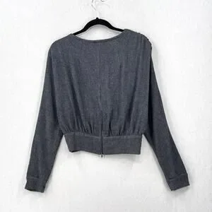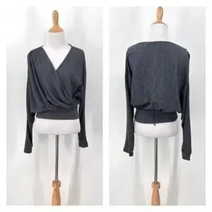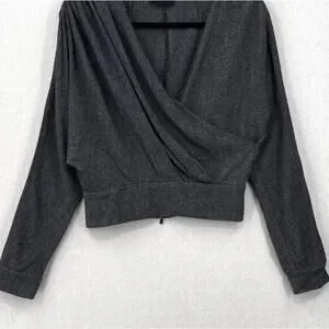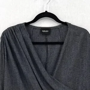 RACHEL COMEY Frances Top Womens 2 Navy Clarion Textured Wrap Long Sleeve Blouse