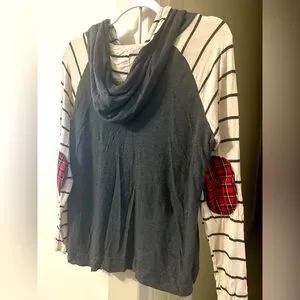 This is a nice really really lightweight hoodie with a nice design patches on the arms great for length.