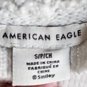 Ae | Smiley Collab Mock Neck Graphic Knit Sweater Gray Womens Small S Gray