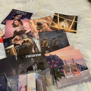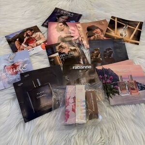 Collection of fragrance samples. Includes Chanel and Rabanne. Perfect for trying new scents or for travel.
