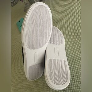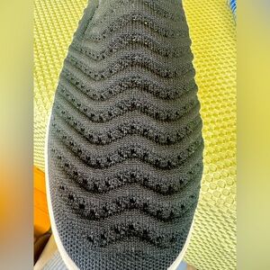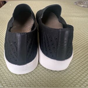 NWOT Mountain Sole ladies Woven Black Slip-on sneaker with white soles. Arch Support and cushion inner soles.