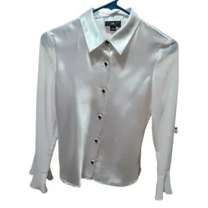 IZ by Amy Byer Juniors XL White Satin Blouse