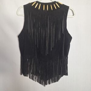 Vintage Renegade Ren Ellis Womens Black Suede Fringe Western Vest Size 12 Boho