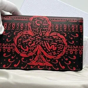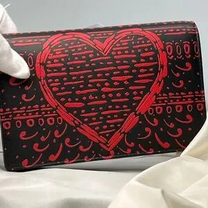 DIOR LIMITED EDITION Black Calfskin Wallet-on-Chain with Red Heart & Club motif