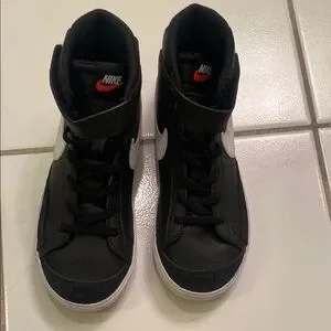 Stylish and comfortable, these Nike kids high-top sneakers are perfect for everyday wear. Featuring a sleek black design with a touch of white, they offer both durability and style.