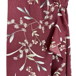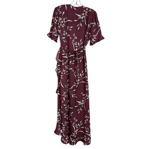 Lulus Wild Winds Burgundy Floral Full Wrap Ruffled Maxi Dress Women's Size M
