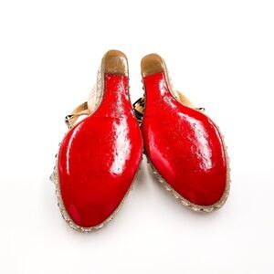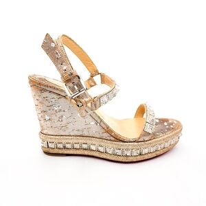 Christian Louboutin Silver Cork Platform Studded Espadrille Sandals Shoes EU 37
