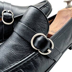 $1190 Gucci Mens GG Silver Horsebit Black Dress Shoes Bit Loafers UK 9.5 US 10.5