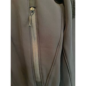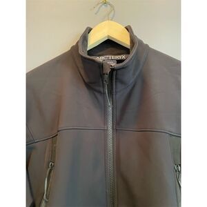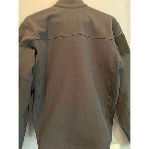 The ARC’TERYX Military Jacket in men's size S is designed for both tactical and outdoor activities. Made from a blend of polyester, nylon, and elastane, it features a black outer shell. The jacket includes high-quality zippers, multiple pockets, and an adjustable hem for a comfortable fit. It is mid-length with a regular fit and is machine washable. Suitable for casual occasions, this jacket offers versatility and style. The jacket is pre-owned with very light wear and is in excellent used condition.