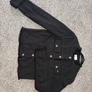 Barely worn stylish light weight black denim jeans jacket with frayed edges