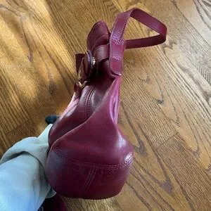 👜COACH: Burgundy vintage, Legacy belted SoHo crossbody bucket bag, #4156.