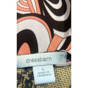 This Dressbarn V-neck top offers a sophisticated look with its vibrant swirl print. Made with polyester and spandex, it ensures comfort and flexibility, making it a stylish yet professional choice. The short sleeves and flattering fit add elegance to any wardrobe.