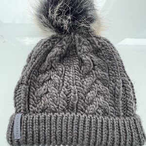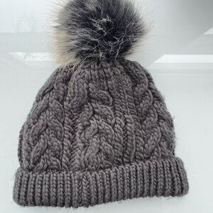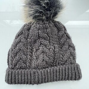 Turtle fur pom pom hat, charcoal gray, lined excellent condition
