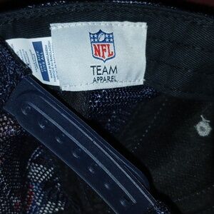 This set of NFL hats features a navy blue cap with white text and a light gray cap adorned with navy blue text. Both hats are designed with a classic curved brim and include adjustable straps for a comfortable fit. One size fits all.