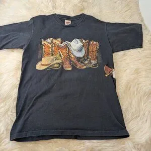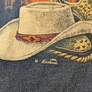 Vtg Western Cowboy Boots And Hat Wrap Around Print T Single Stitch T Shirt Sz