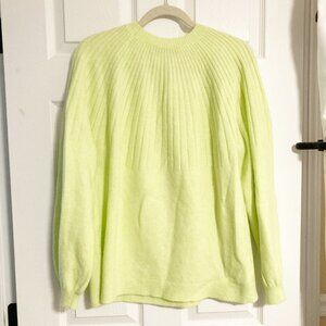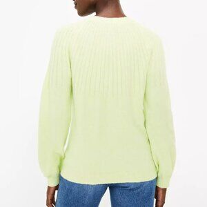 Artful ribbing from the neck of this soft blouson-sleeved sweater enhances its effortlessly oh-so-lovely silhouette. Round neck. Long sleeves. Midweight, hits below natural waist. Slightly relaxed fit.