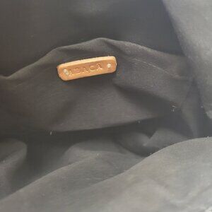 This backpack bag tells a tale of craftsmanship and elegance. Its intricate woven design and braided strap hint at skilled hands weaving nature into style. The black and beige colors create a striking contrast, making it a unique accessory. An inner label proudly displays "Abacá," a nod to its organic roots.