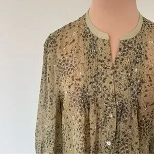 Anthropologie Fei Cavorting Flora Silk Blooms Floral Pintuck Button Top Blouse 6