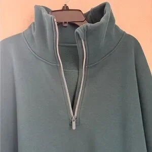 Sweatshirt is in great condition and only worn a few times. The color is Storm Teal and is a green/blue shade. The front has a large pocket. The inside is a fleece and the sweatshirt itself leans more toward the heavier side.