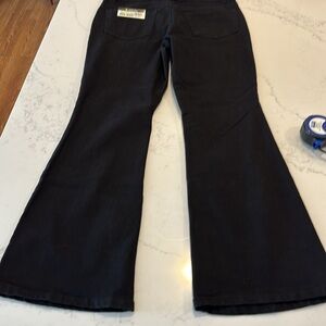 NWT, size 14 D.jeans. They are black denim that is 54% cotton 24% reprieve polyester 21% rayon and one percent spandex. As you can see by the pictures they have an 11 inch tries in a 31 inch inseam. They have front and back pockets.