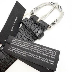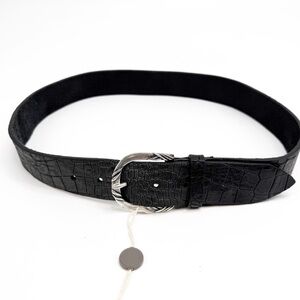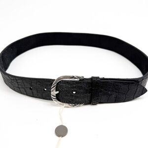 Orciani Handmade Crocodile Emobossed Matte Leather Italian Made Black Belt, XS. An emblem of our heritage and our future, the belt is the must-have accessory in every woman's wardrobe. Worn over jackets, pants or dresses, it's perfect for creating dynamism and playing with shapes and materials. Amazing Brand New Made in Italy belt. Crafted in luxury learhers and the most gorgeous jewelry like buckle this belt is absolutely stunning. Matte black croc - incredible!