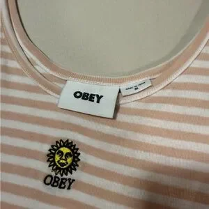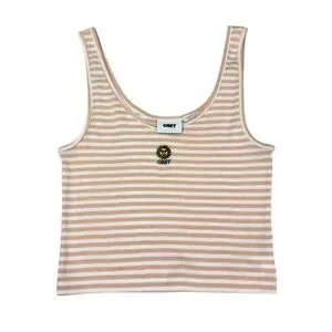 Obey Women’s Lightweight Sunny Stripe Crop Tank with Sun Embroidery Size Medium