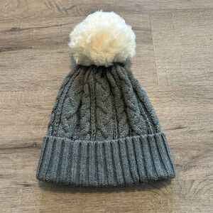 The North Face Women's Gray Cable Knit Beanie with Faux Fur Pom EUC