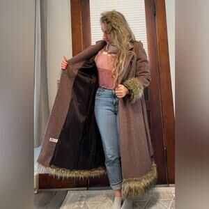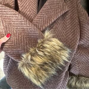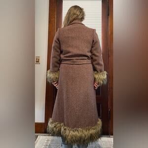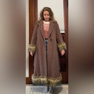 Vintage herringbone pattern 100% wool single button trench coat with tie waist