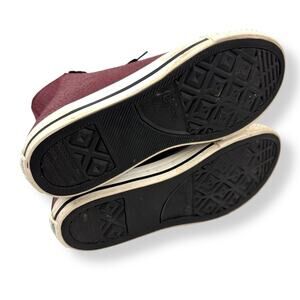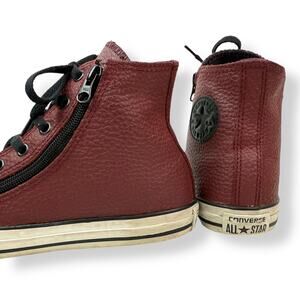 CONVERSE maroon genuine leather zippered ALL STAR Chuck Taylor high top sneakers. Genuine leather. Side zippers make it super easy to put on. Marked size Juniors 5 / EUR 37.5 / Women's 7. Excellent condition with light signs of wear.